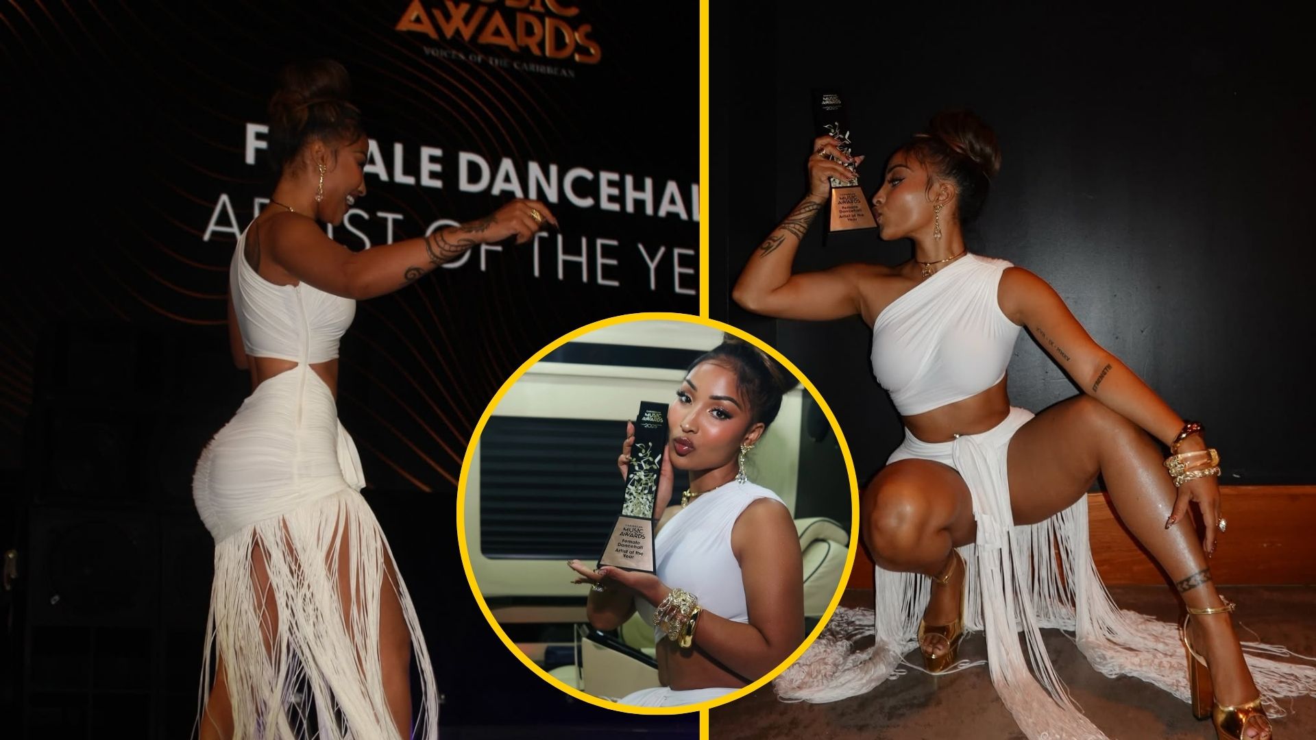 Clad in an elegant white outfit and radiating confidence, Shenseea posed with the award, expressing heartfelt gratitude to her fans, team, and the Caribbean community. The award recognizes her relentless dedication, talent, and influence in the music industry.